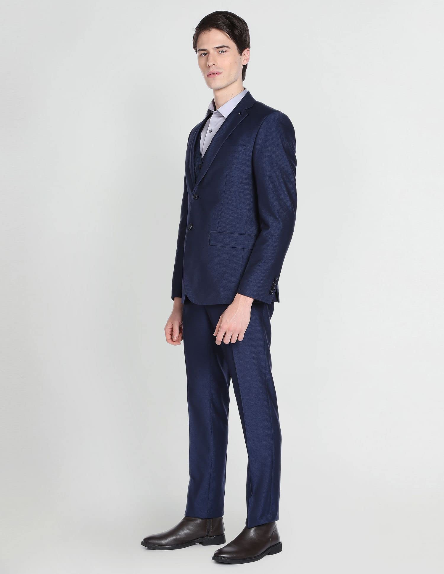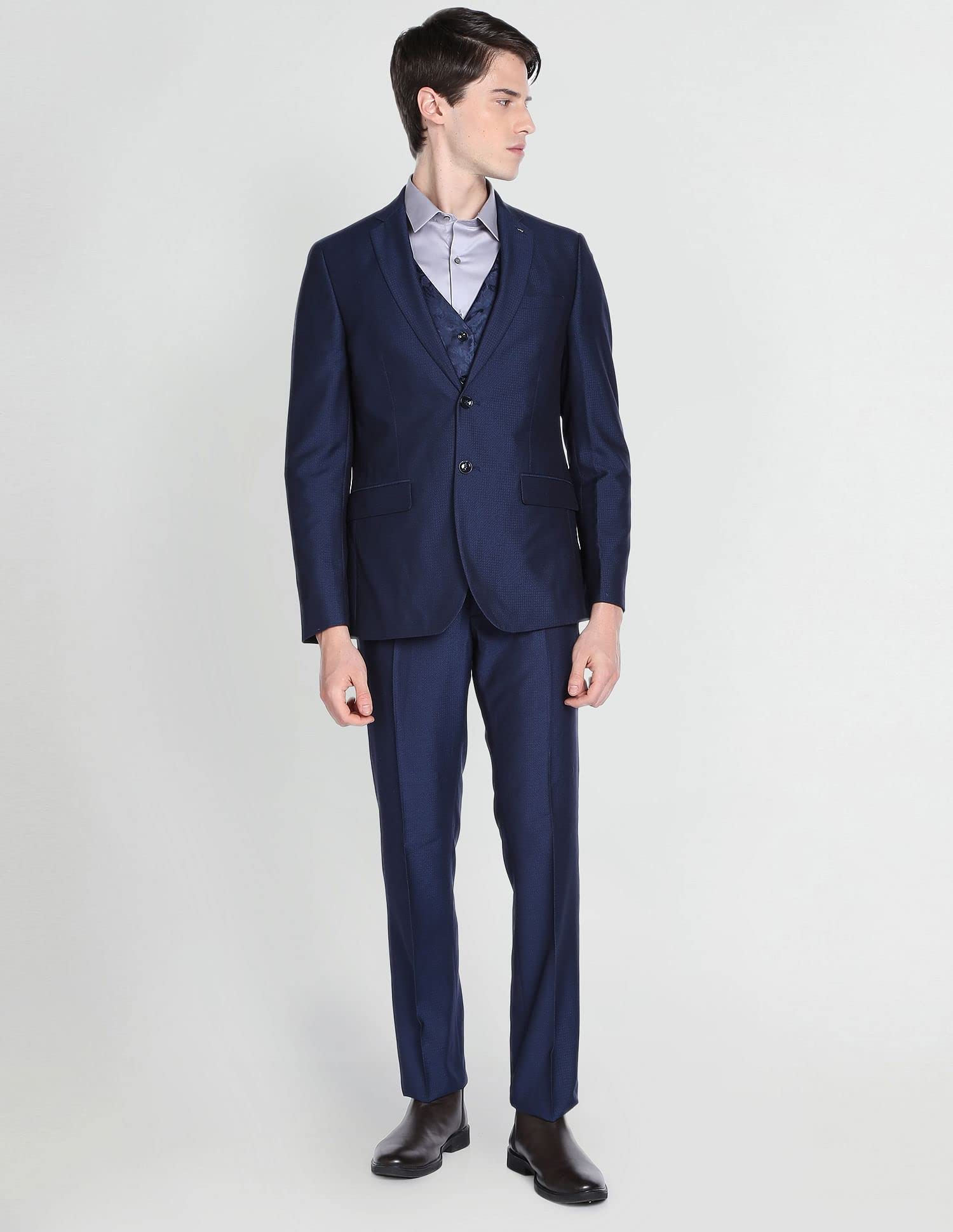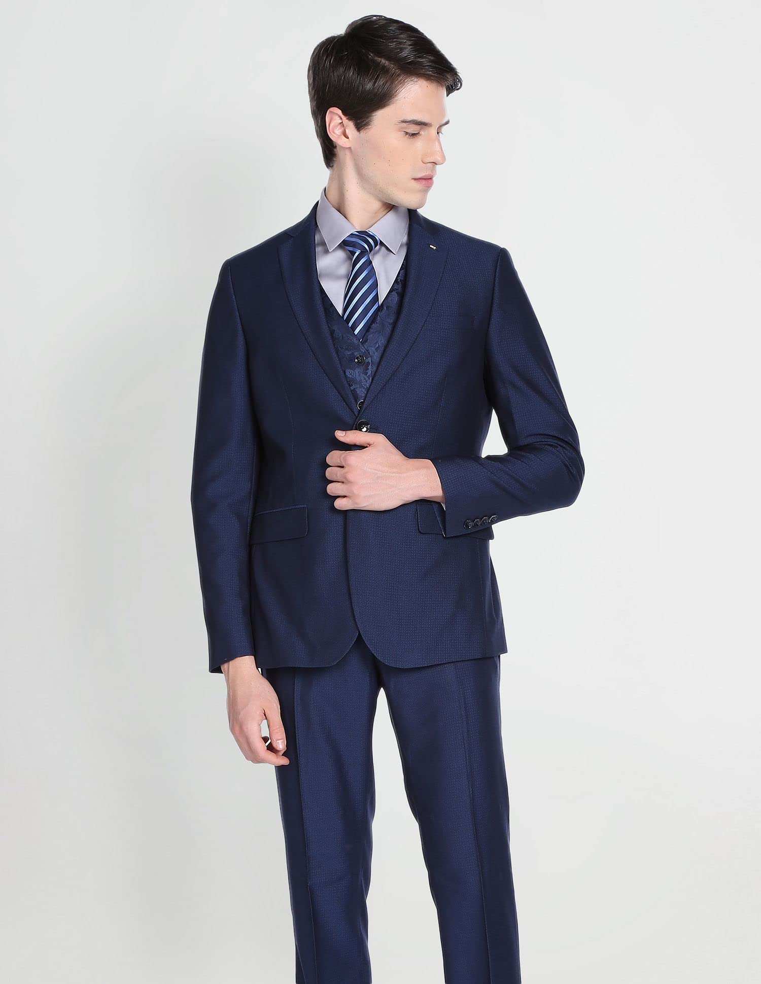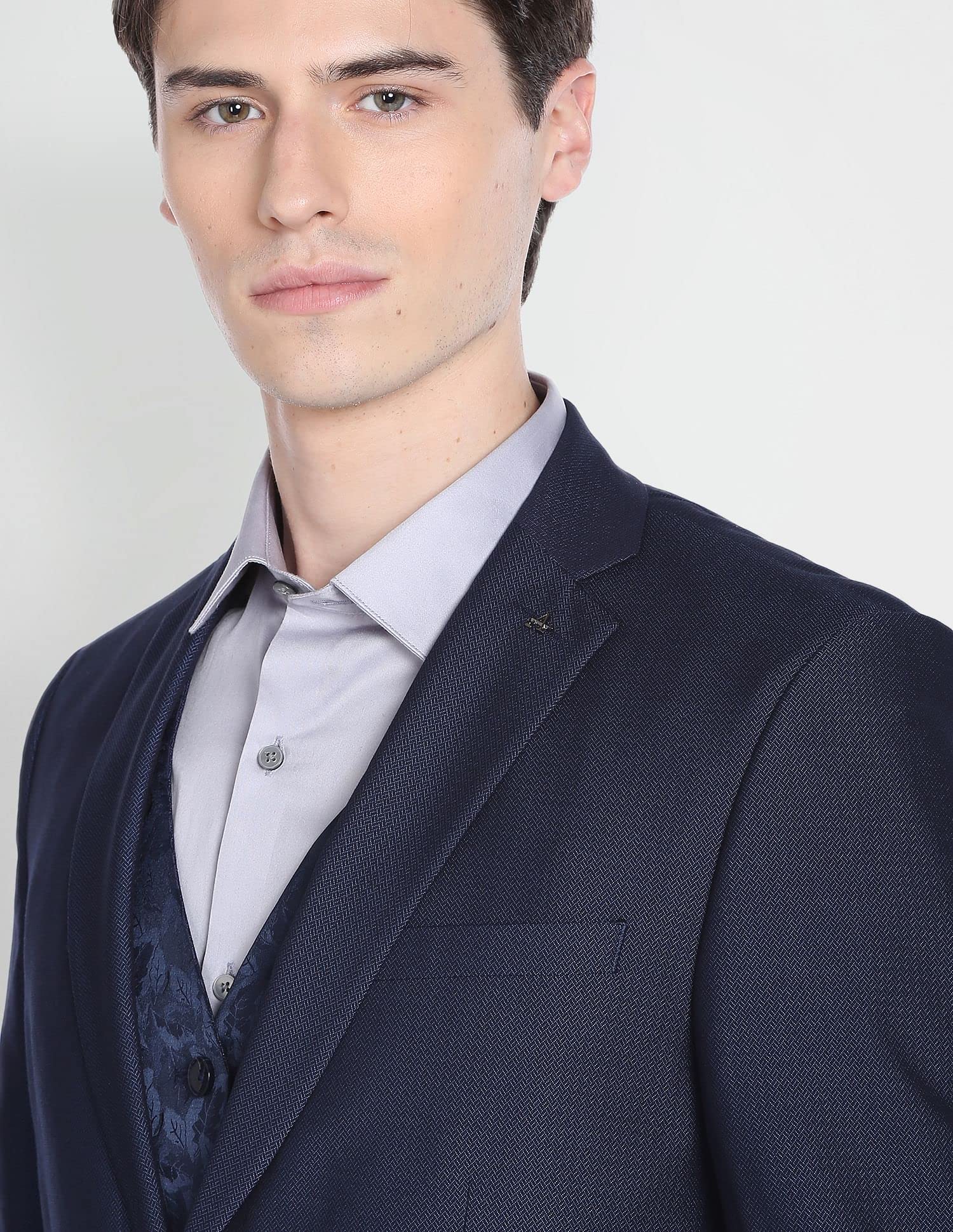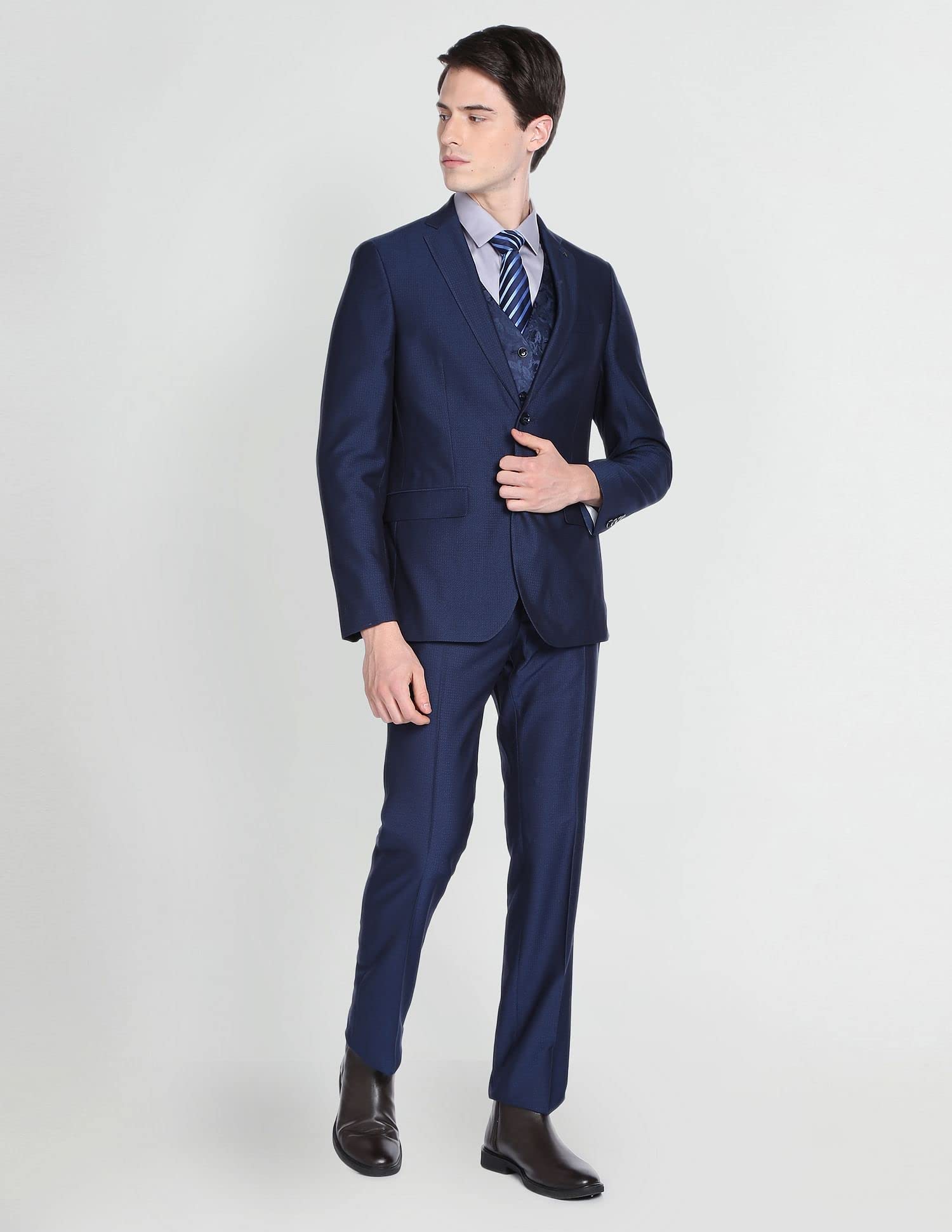 Elevate your formal wardrobe with this sharp three-piece suit from the experts at Arrow. It’s been excellently tailored with a notch lapel collar blazer and a pair of streamlined trousers. Wear yours with a crisp white shirt and contrast tie to your next conference wedding for a clean-cut look.