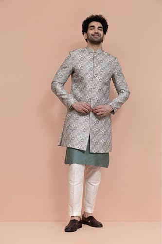 - Package content: 1 Kurta: 1 Sherwani: 1 Trouser|Fabric: Silk Blend|Pattern: Jacquard