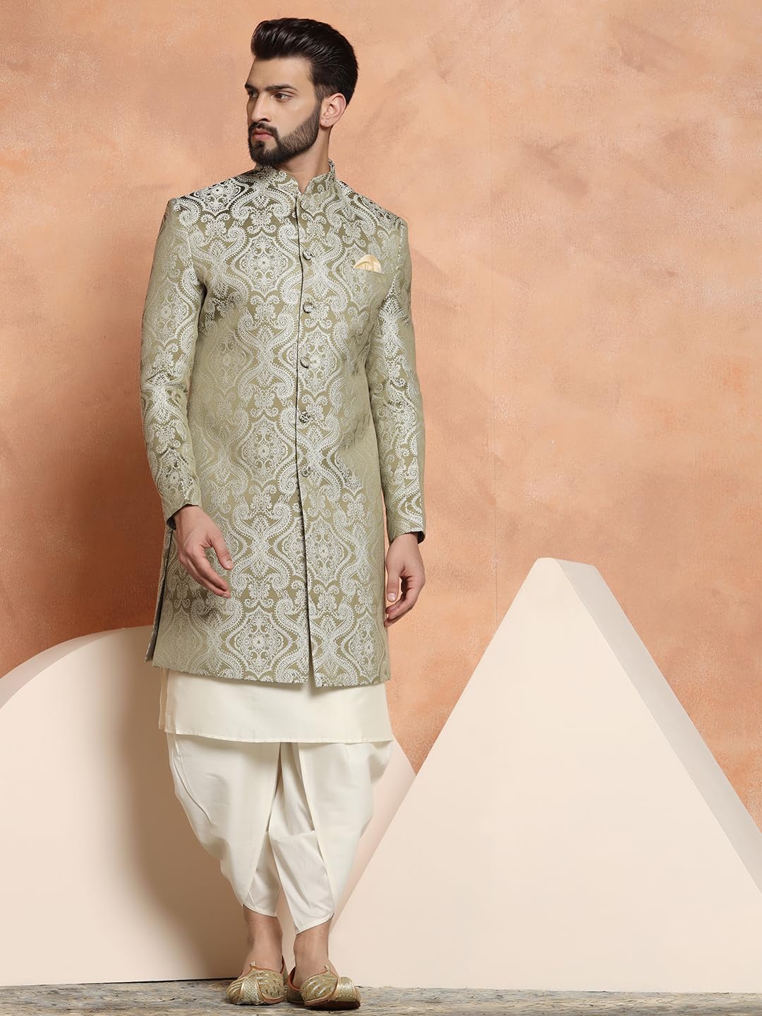 - ELEGANT SHERWANI SET: Discover a wide range of elegantly designed Sherwanis that embody traditional charm and modern style, these sherwani sets are perfect for grooms and groomsmen, featuring exquisite embroidery and opulent designs