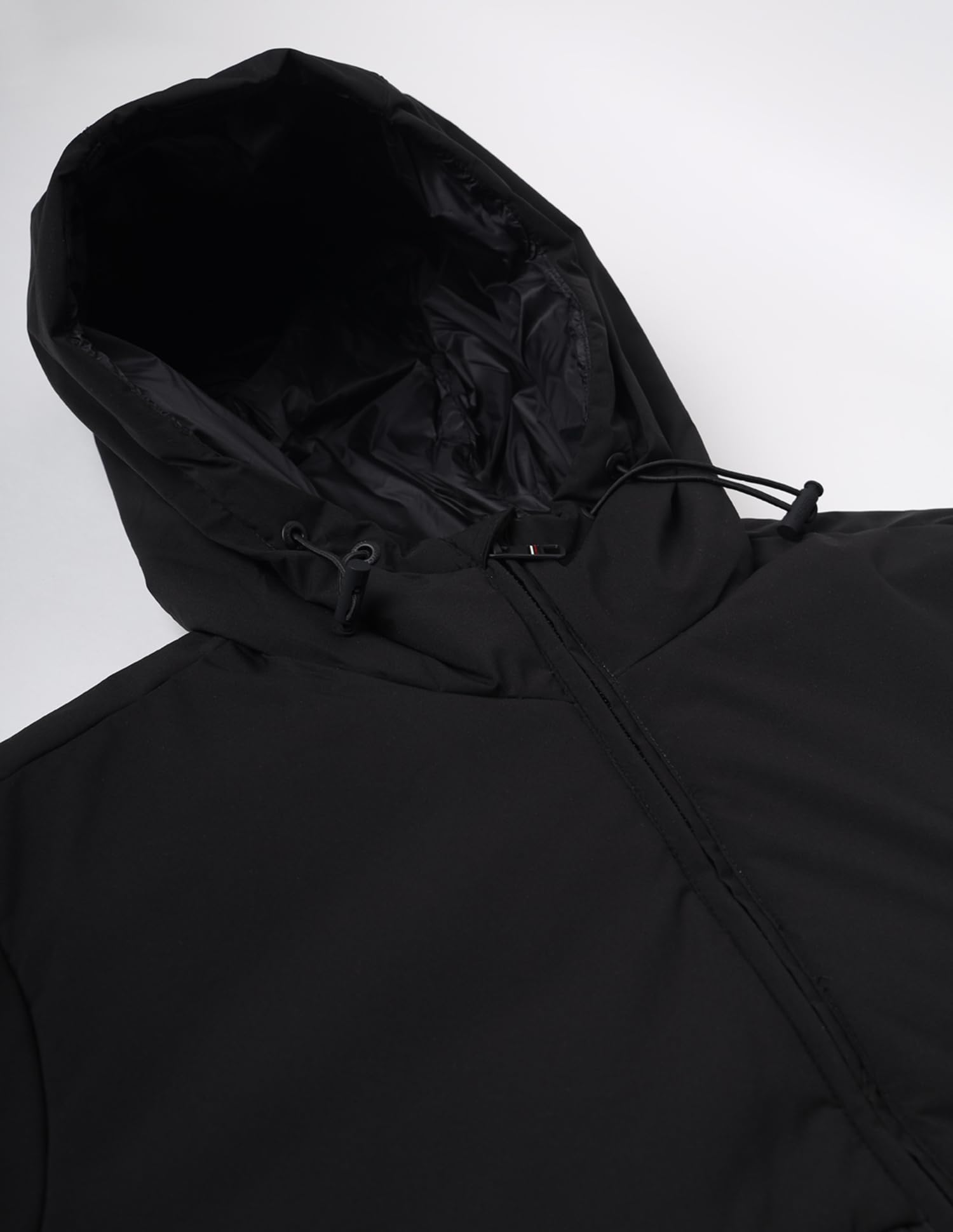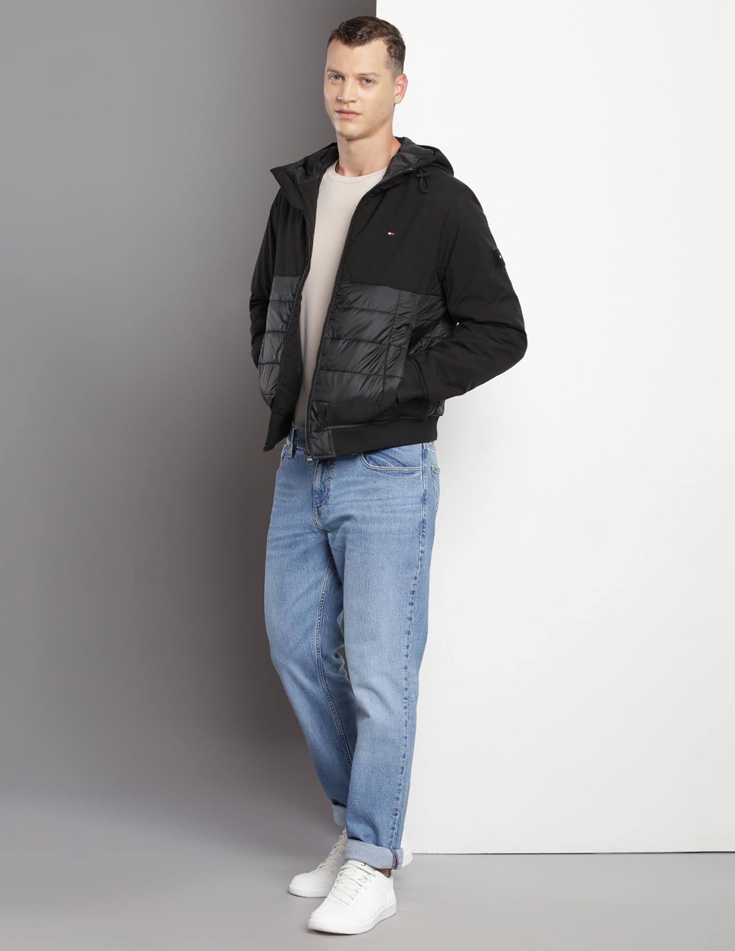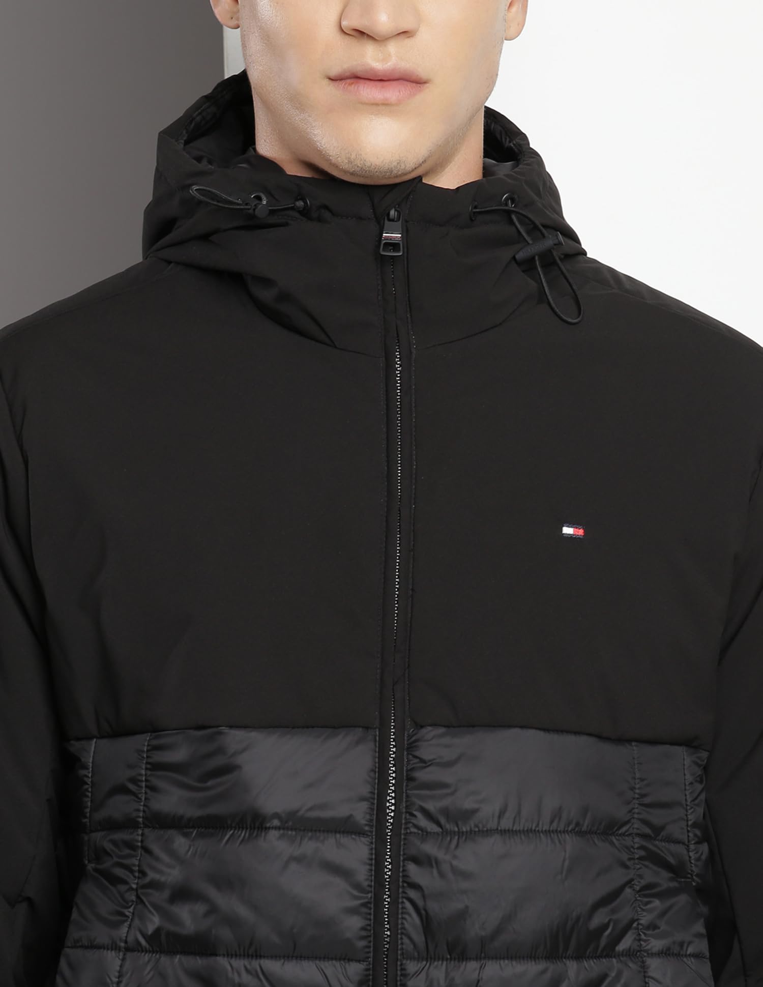 Tommy Hilfiger Black Nylon Quilted Hooded Full Sleeves Regular Fit Men Jacket (F23HMOT035) Size-L