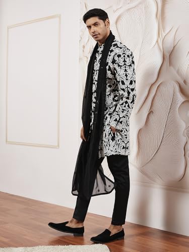 - Fabric: Fox Geogette | Contents: a Allover Embroidered Sherwani,Pyjama And Dupatta Set For Men.